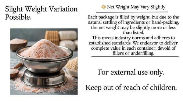 Embracing Natural Variations. Our packages are carefully filled by weight, and while the net weight may fluctuate slightly due to the natural settling of ingredients or hand-packing, rest assured it's all part of our commitment to quality.